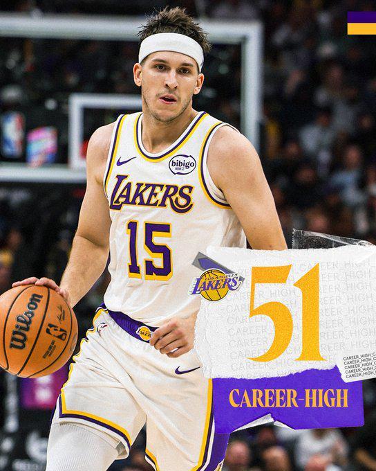 據(jù)統(tǒng)計(jì),里夫斯成為湖人隊(duì)史上第八位單場拿到最少50分10籃板的球員。在他之前的球員是:埃爾金·貝勒、科比、張伯倫、魯?shù)稀だ斔?、奧尼爾、詹姆斯、安東尼·戴維斯。